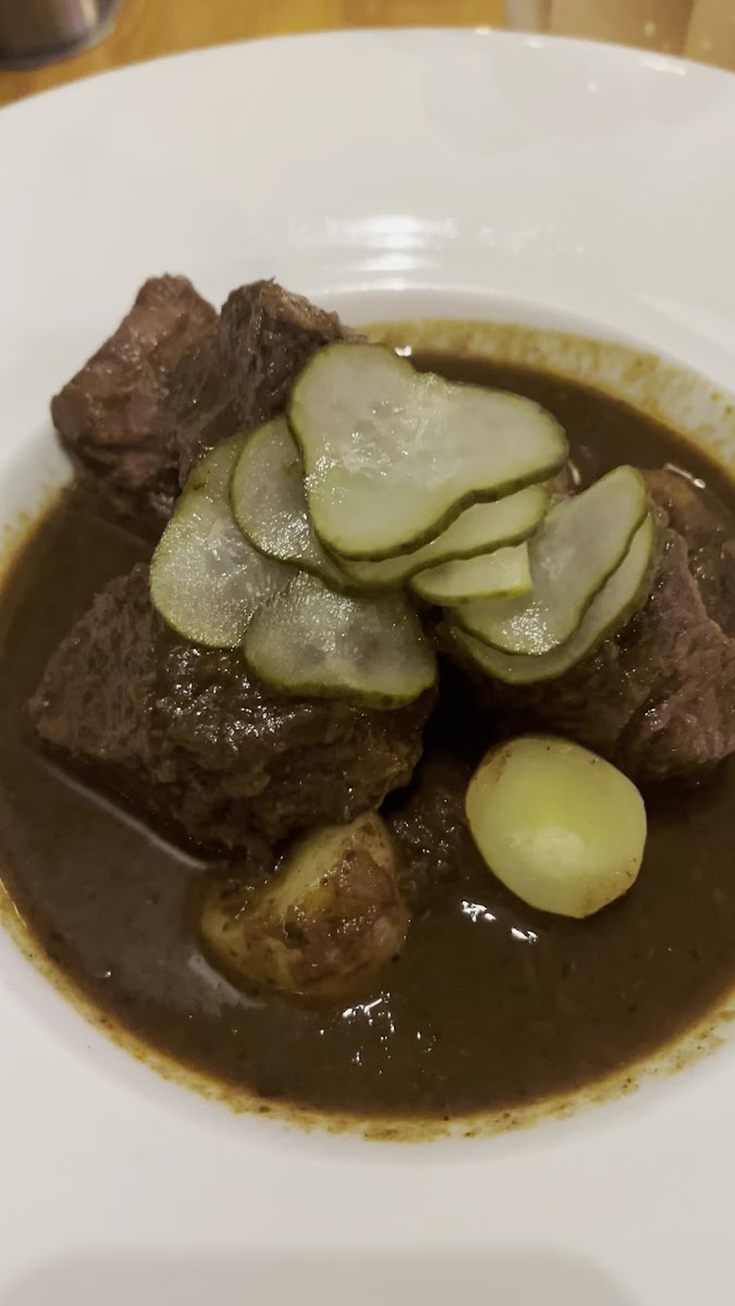 The menu leans heavily into Hungarian classics, but it doesn’t stop there. You’ll find staples like goulash soup, duck breast, and beef stew, yet each dish arrives with thoughtful presentation and subtle updates. When I ordered the duck breast, it came perfectly medium, with crispy skin and a rich red wine sauce that tasted slow-reduced and carefully seasoned. The chef later explained that they use locally sourced ingredients whenever possible, a practice increasingly supported by sustainability research from organizations like the Food and Agriculture Organization of the United Nations, which highlights the environmental benefits of regional sourcing. You can taste that freshness here; the vegetables are vibrant, and the meats have depth.